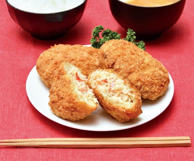 たっぷりのカニ身を北海道産の男爵イモで包んだコロッケ。