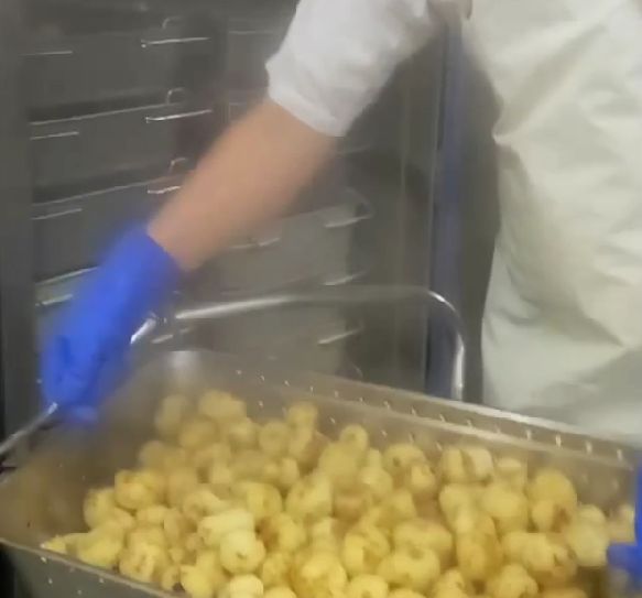 マッシュした芋を練り、調味します。