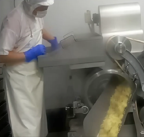 専用の機械でコロッケの形に成形します。