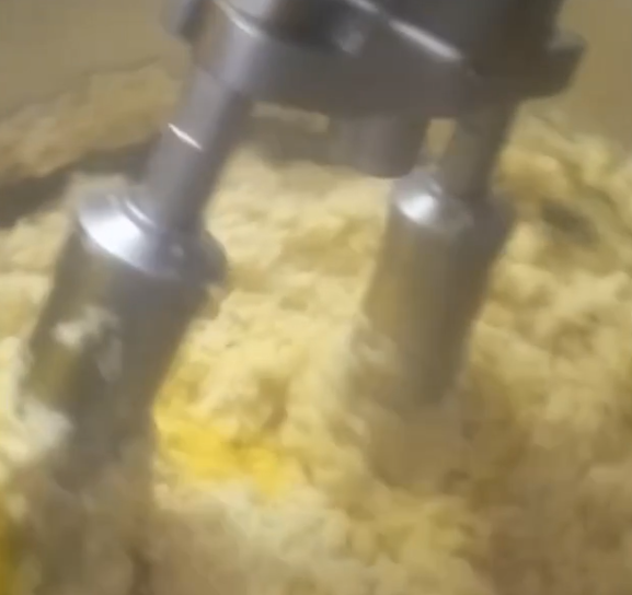 蒸した芋をすり潰し、なめらかにします。